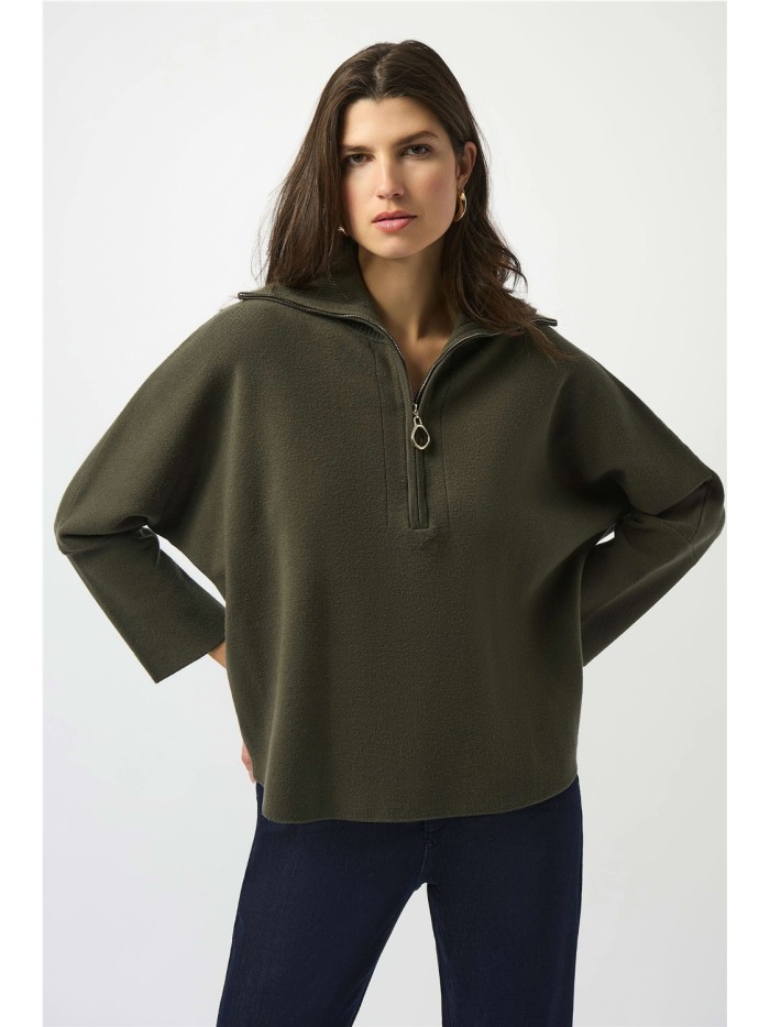 Jersey de punto suave con una cremallera frontal y mangas tres cuartos.